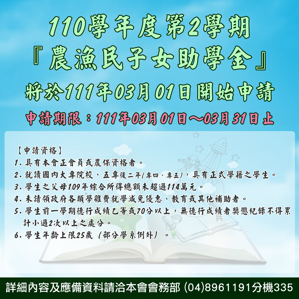 110學年第2學期【農漁民子女助學金】