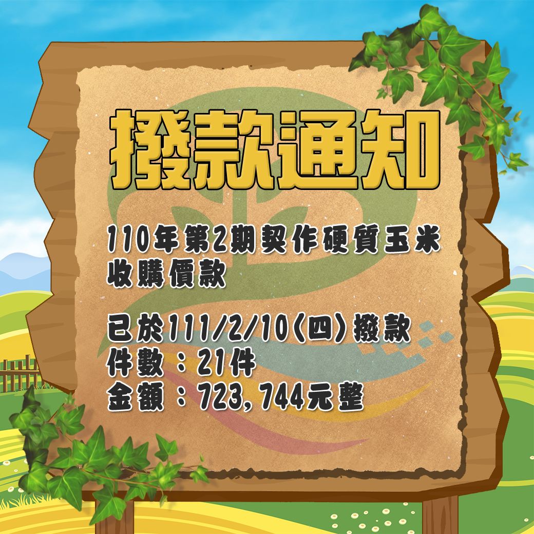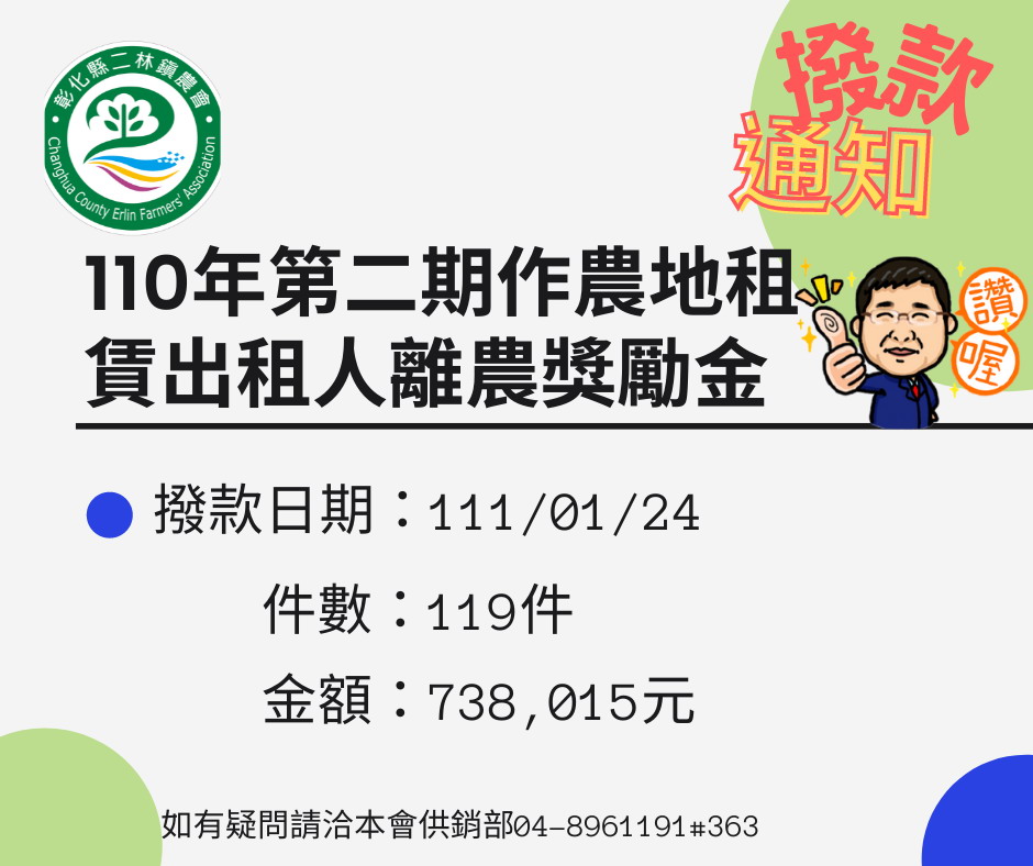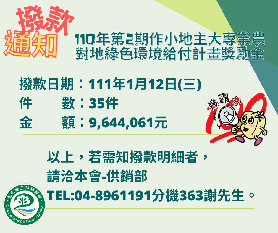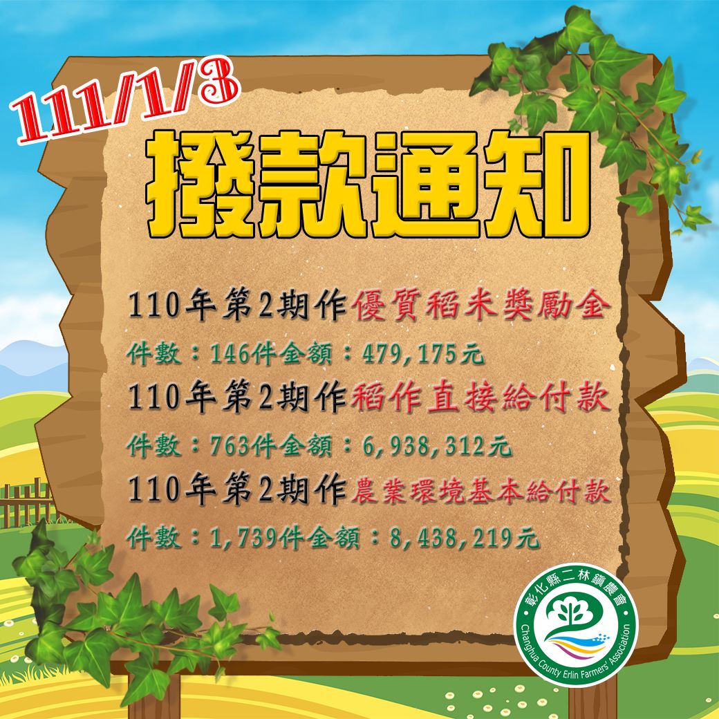 110年第2期作農業環境基本給付款(ps.摘要:農環金)