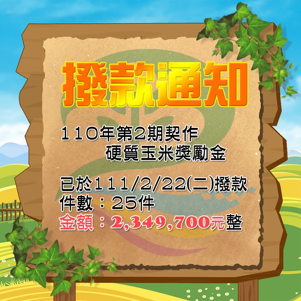 110年2期契作硬質玉米獎勵金