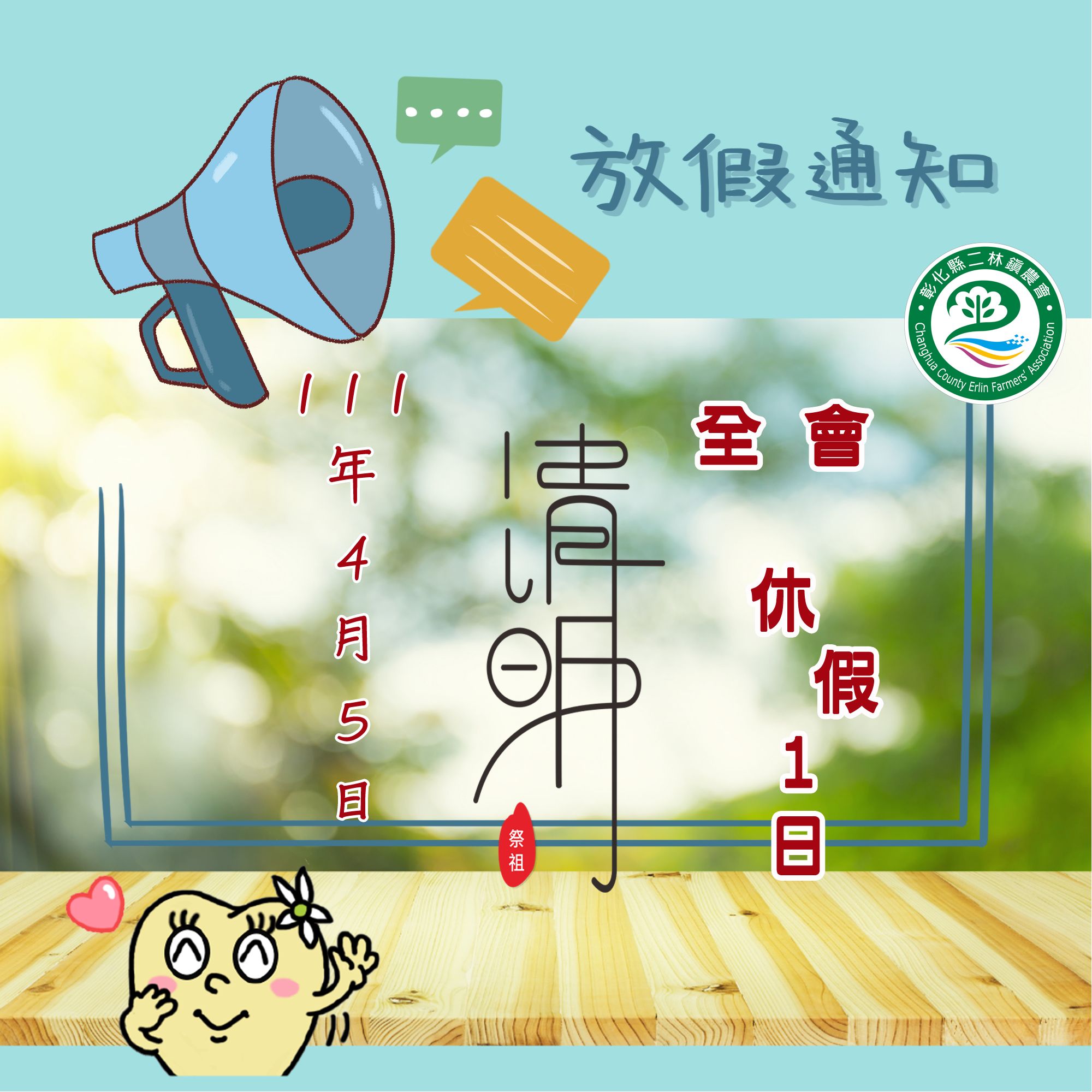 適逢兒童節&清明節連假休假公告如下:
