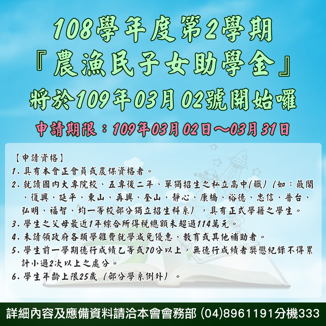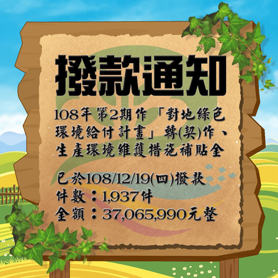 108年第2期作小地主大專業農補貼金已於108/12/31(二)撥款囉!!