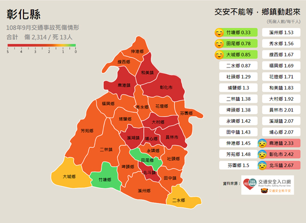合計:傷2314/死13人,提醒全民珍愛生命,