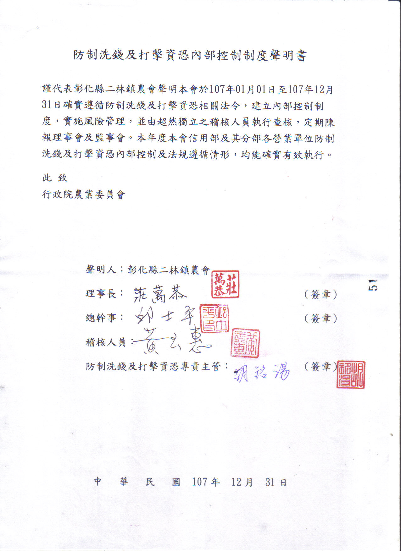 ※二林鎮農會信用部 【洗錢防治相關業務】