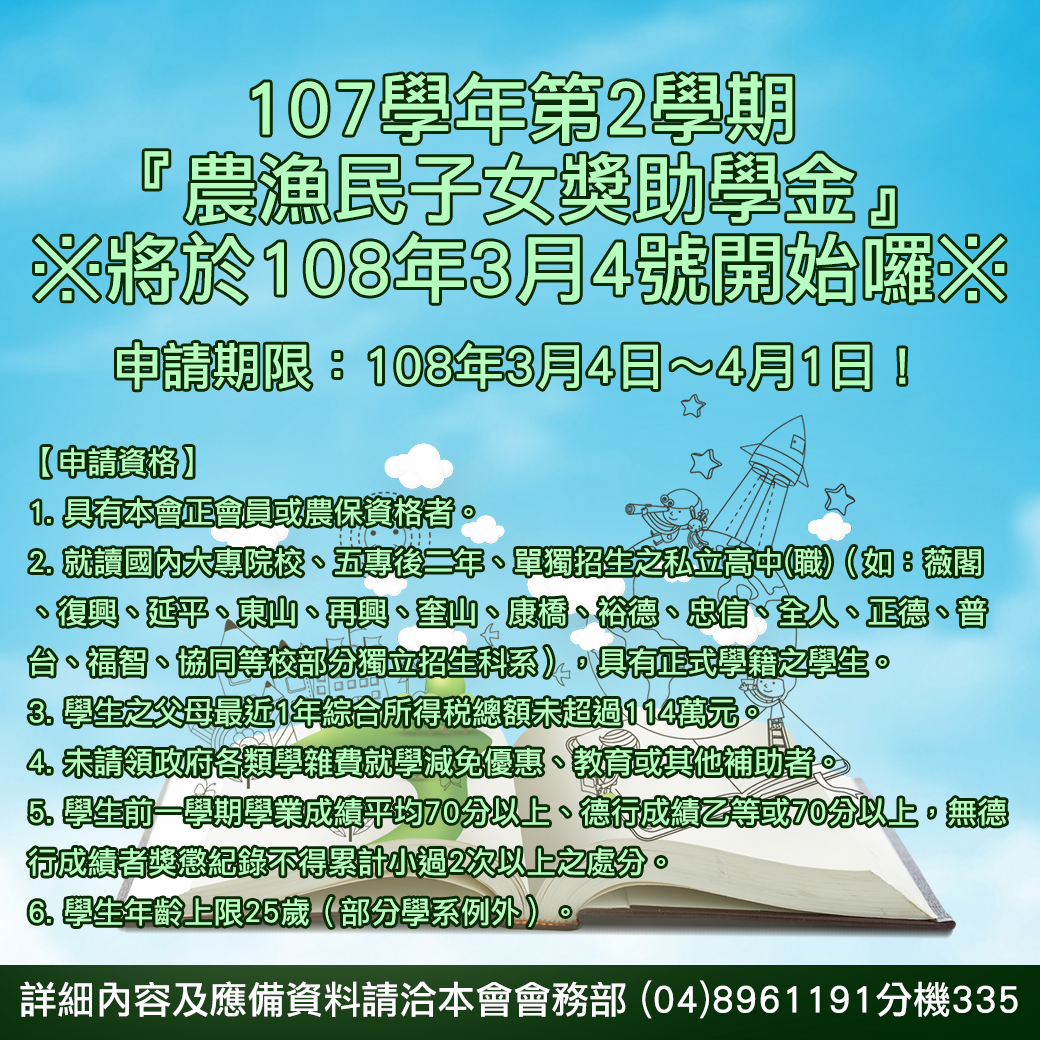 就學獎助學金申請表(107學年度第2學期),請點選附件下載。