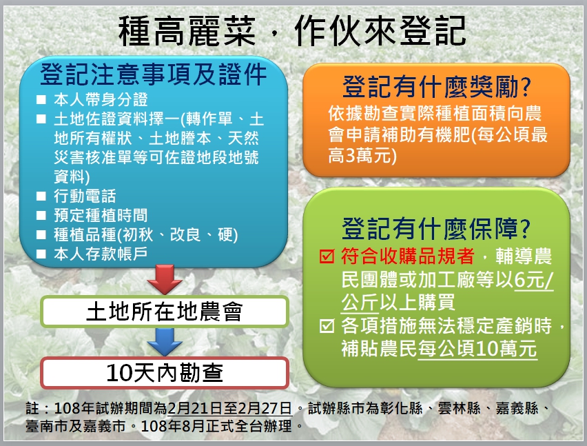 更多詳細資訊請參閱圖片內容及附件(甘藍種植登記作業規範)