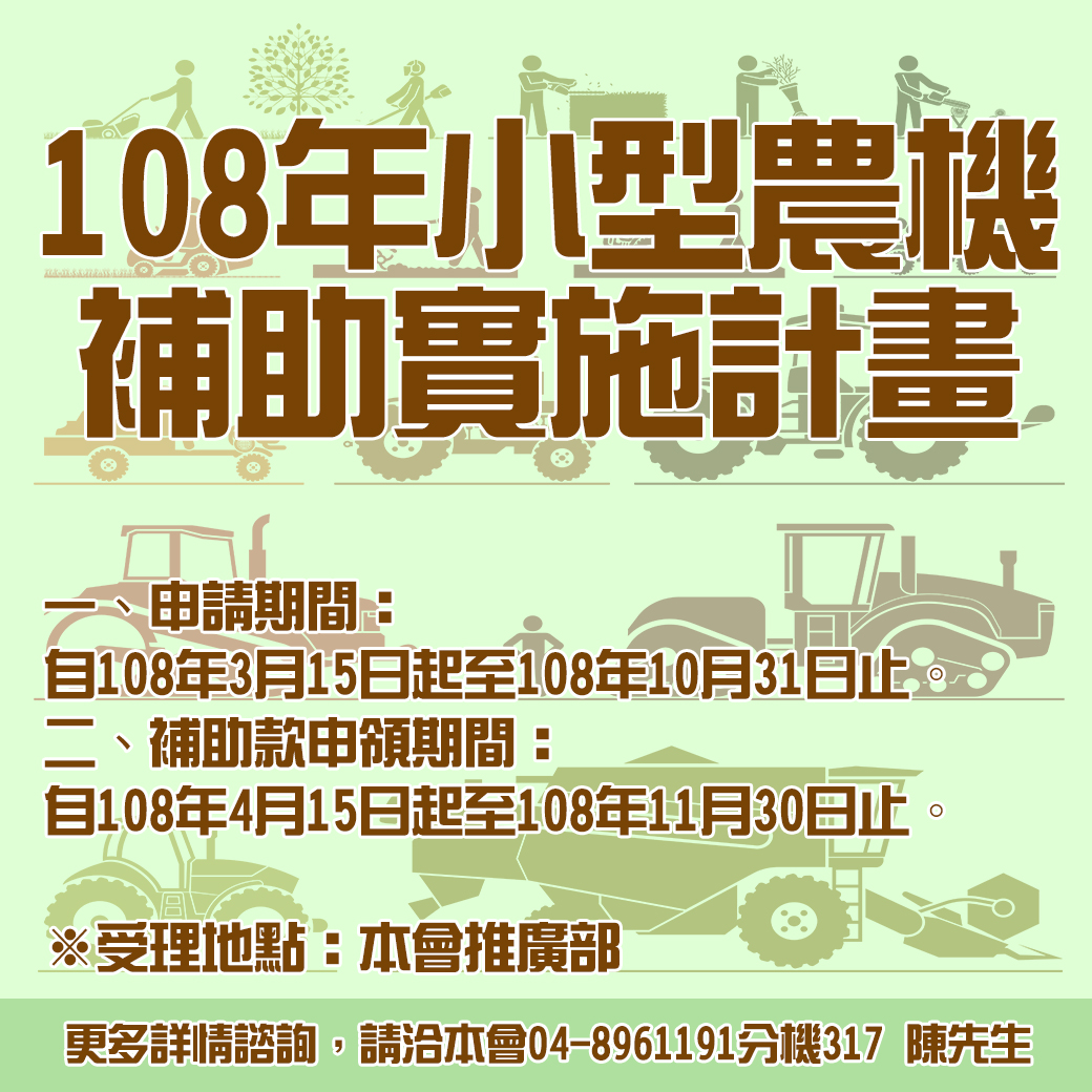 附件: ---------------- 108年小型農機補助實施計畫-補助機種及標準表.pdf