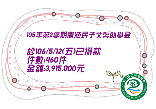 若有獎助學金相關事宜,請洽二林鎮農會-會務部。 TEL:04-8961191分機333陳小姐。