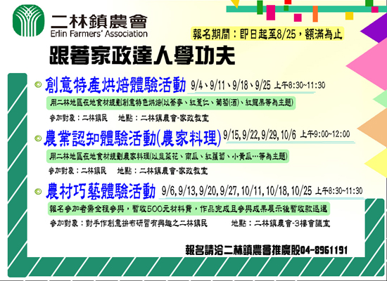 嗶!嗶!各位轄內鄉親們~對【創意料理、烘焙、手工藝】有興趣者,請看過來!