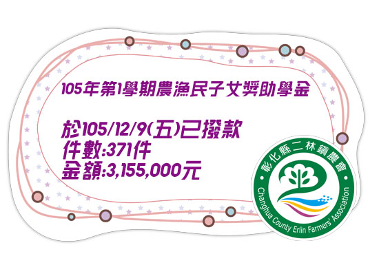 105年第1學期農漁民子女獎助學金撥款通知~