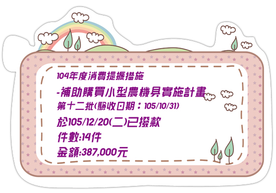 104年度【消費提振措施-補助購買小型農機具實施計畫】撥款通知~~~