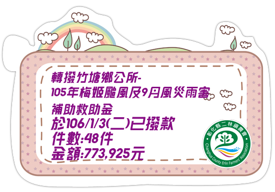 轉撥竹塘鄉公所- 105年梅姬颱風及9月風災雨害補助救助金