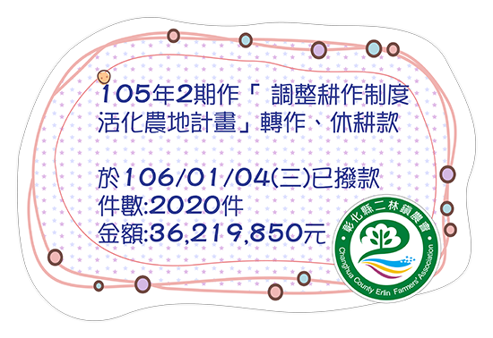 若需知撥款明細請洽二林鎮農會-推廣部 TEL:04-8961191分機317陳先生