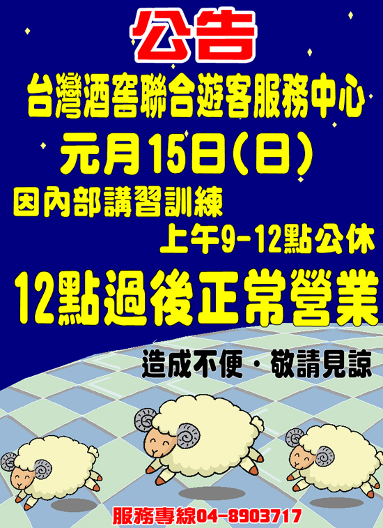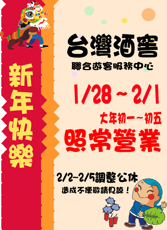 新年快樂!台灣酒窖聯合遊客服務中心~春節假期調整公休通知!