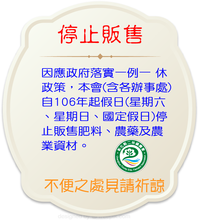 假日及國定假日肥料、農藥及農業資材將停止販售~~~