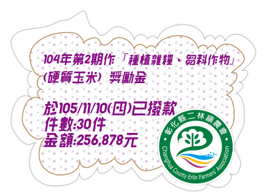 104年第2期作「種植雜糧、芻料作物獎勵金」撥款通知~