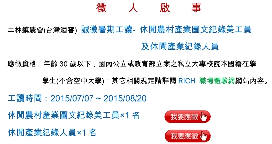 二林鎮農會(台灣酒窖) 誠徵暑期工讀