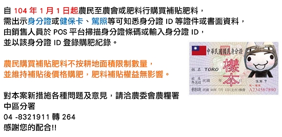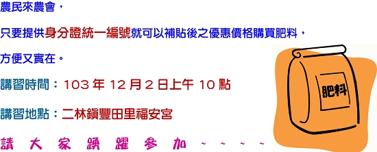 農民以身分證統編購買肥料講習說明