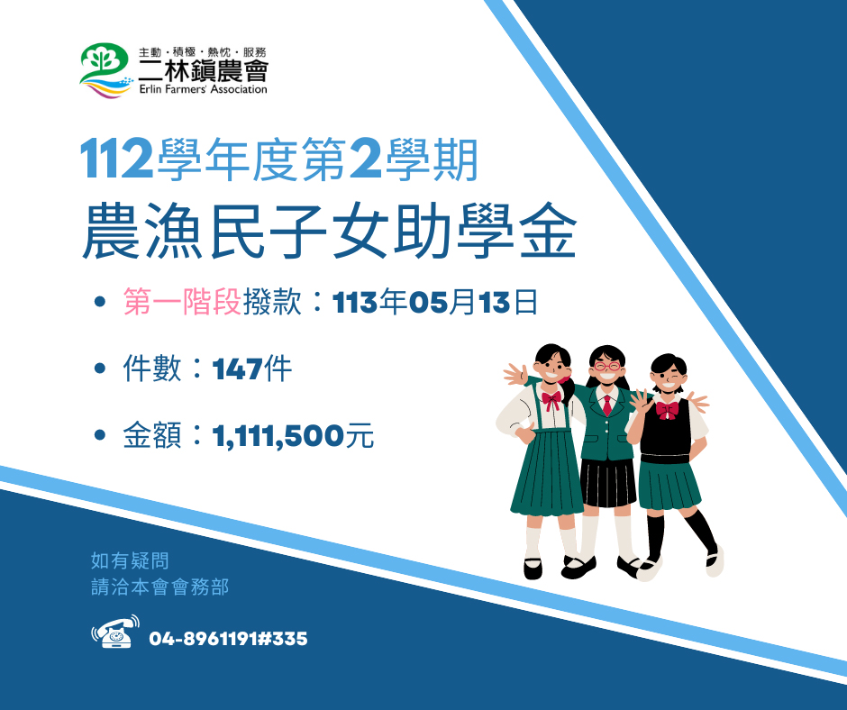 尚未申請112學年度第2學期就學金者,得向農會提出申請。