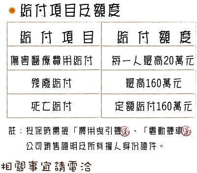 本會即日起受理農用曳引機及電動機車強制責任保險投保事宜
