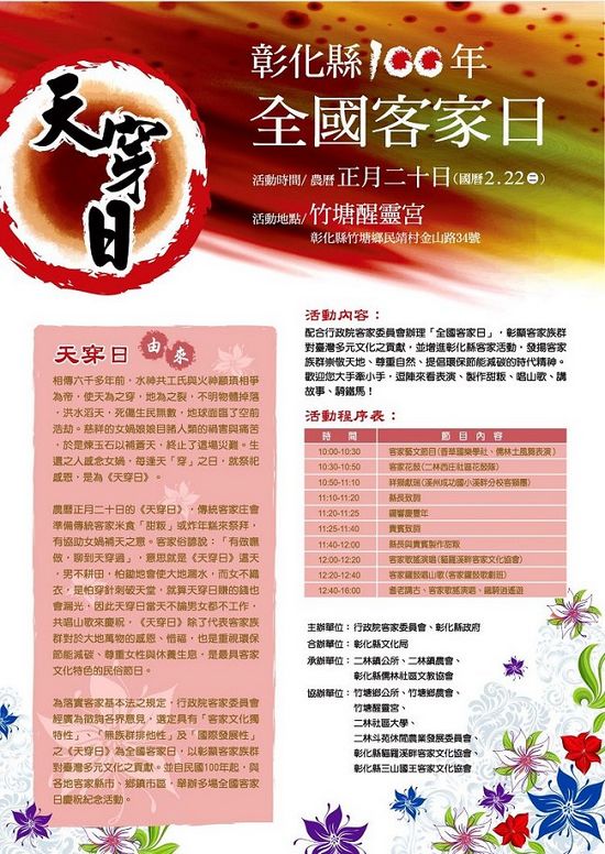 竭誠邀您參與彰化縣100年全國客家日 活動地點就在竹塘鄉醒靈宮 鐵馬逍遙遊報名單....傳真報名