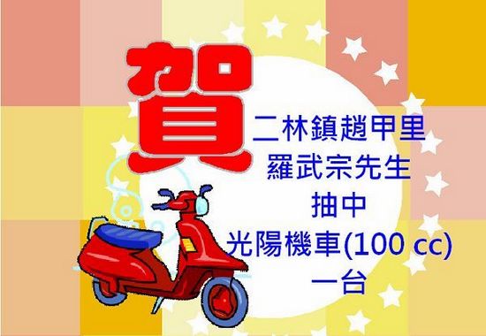 活動期間:即日起至100年1月30日至二林鎮農會本會、中山分部及萬興、挖仔、原斗辦事處等辦理三大有線電視收視費【轉帳扣繳】/戶即可獲得抽獎券一張及$200元禮券(至購物中心兌換)一張。