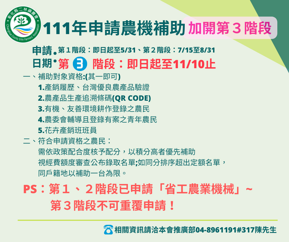 註:政府補助面積有限,每人最高限領1.2公頃,領完為止!