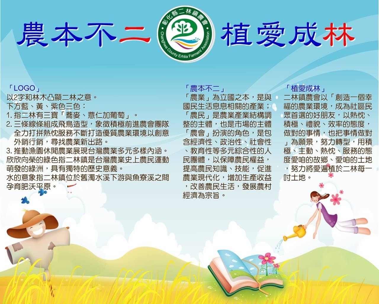 二林鎮農會以「創造一個幸福的農業環境,成為社區民眾首選的好朋友,以熱忱、積極、禮貌、效率的態度,做對的事情,也把事情做對」為願景,努力轉型,用積極、主動、熱忱、服務的態度愛咱的故鄉、愛咱的土地,努力將愛遍植於二林每一吋土地。