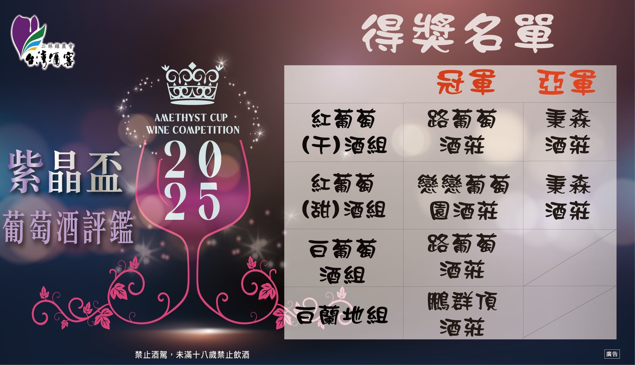 標題:114年紫晶盃葡萄酒評鑑得獎名單